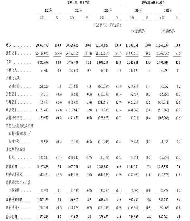 2022-2024年,公司分别录得营收293.92亿元、305.29亿元、331.998亿元。同期对应利润13.32亿元、11.62亿元及13.28亿元。