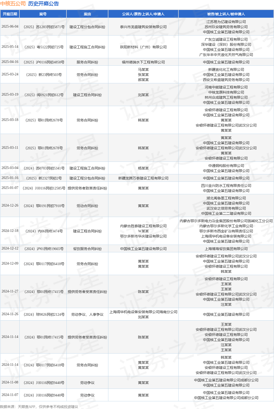 本站消息,根据天眼查APP显示维嘉资本,近日公布了一则中国核工业第五建设有限公司作为被告/被上诉人的开庭公告,详细内容如下: